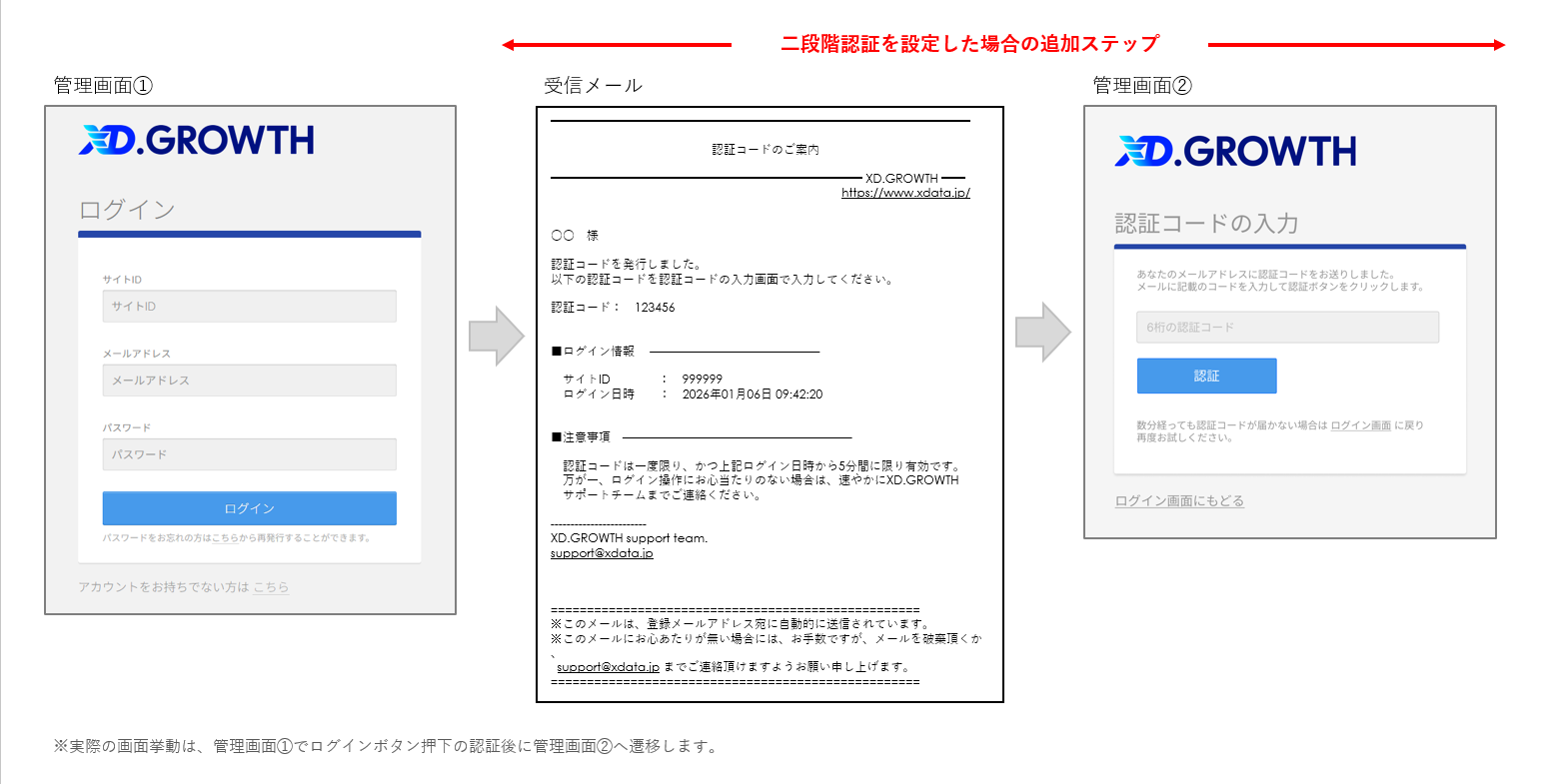 2026年1月7日のシステムメンテナンス実施後に、XD.GROWTH管理画面へのログインにおいて、二段階認証の設定が可能になります。